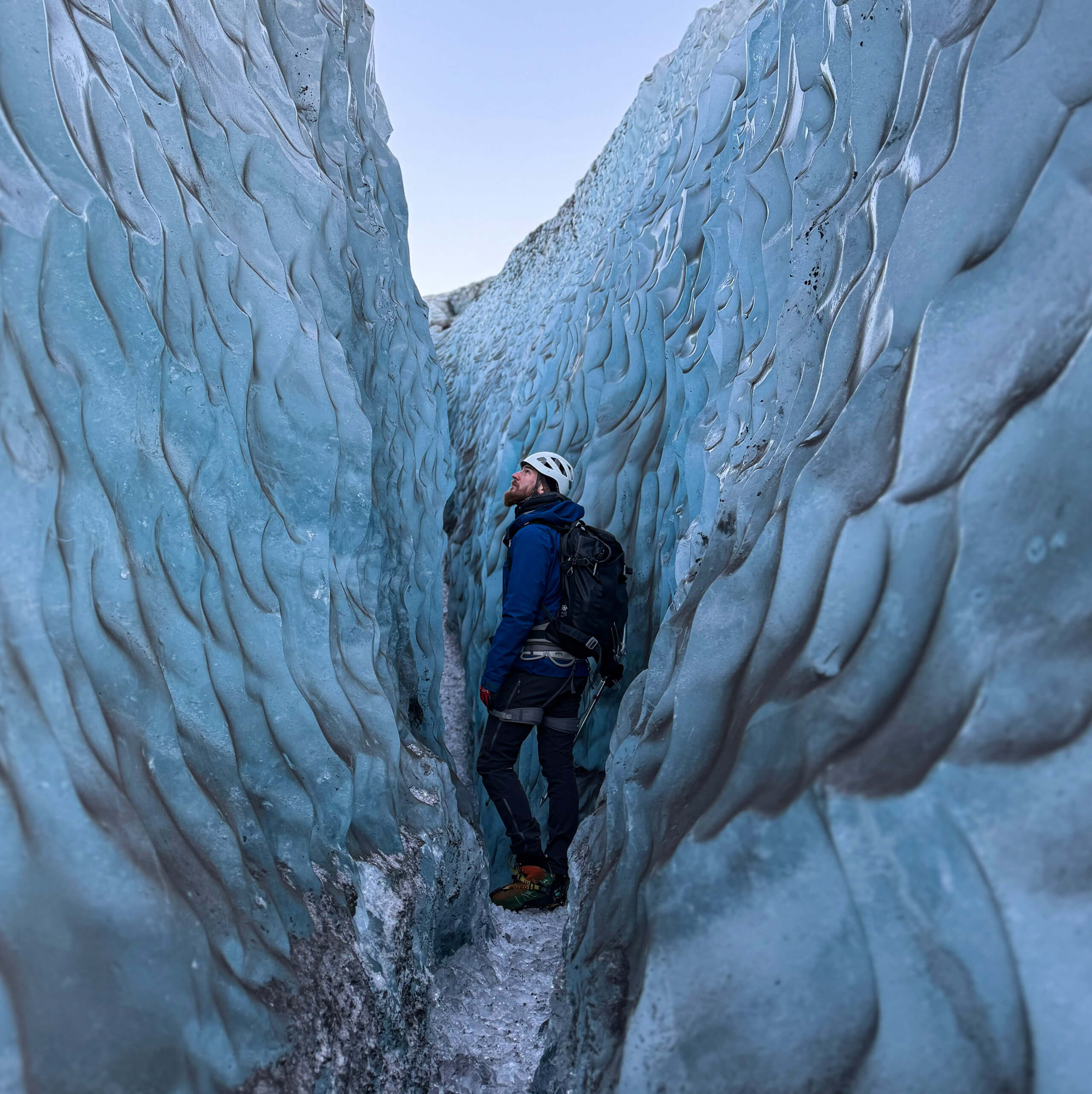 Na ledovci budete objevovat úchvatné úkazy, jako jsou hluboké trhliny, mouliny (svislé vodní tunely), vrstvy sopečného popela zamrzlé v ledu a někdy i malé ledové jeskyně nebo ledovcové „myšky“. Během celé túry vám průvodce přiblíží sopečnou geologii Islandu, historii vzniku ledovců a viditelné dopady klimatických změn na islandský led.